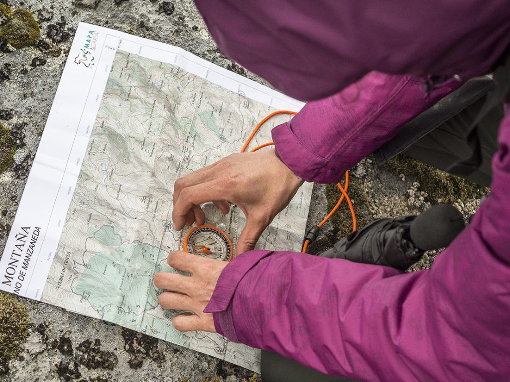 2. Realiza un circuito por terreno de baja y media montaña con cartografía especifica de montaña, demostrando el manejo combinado de distintas técnicas de orientación mapa y brújula para la consecución de la toma de controles, trasportando una mochila con su equipo personal y un mínimo de 10 kg de peso.